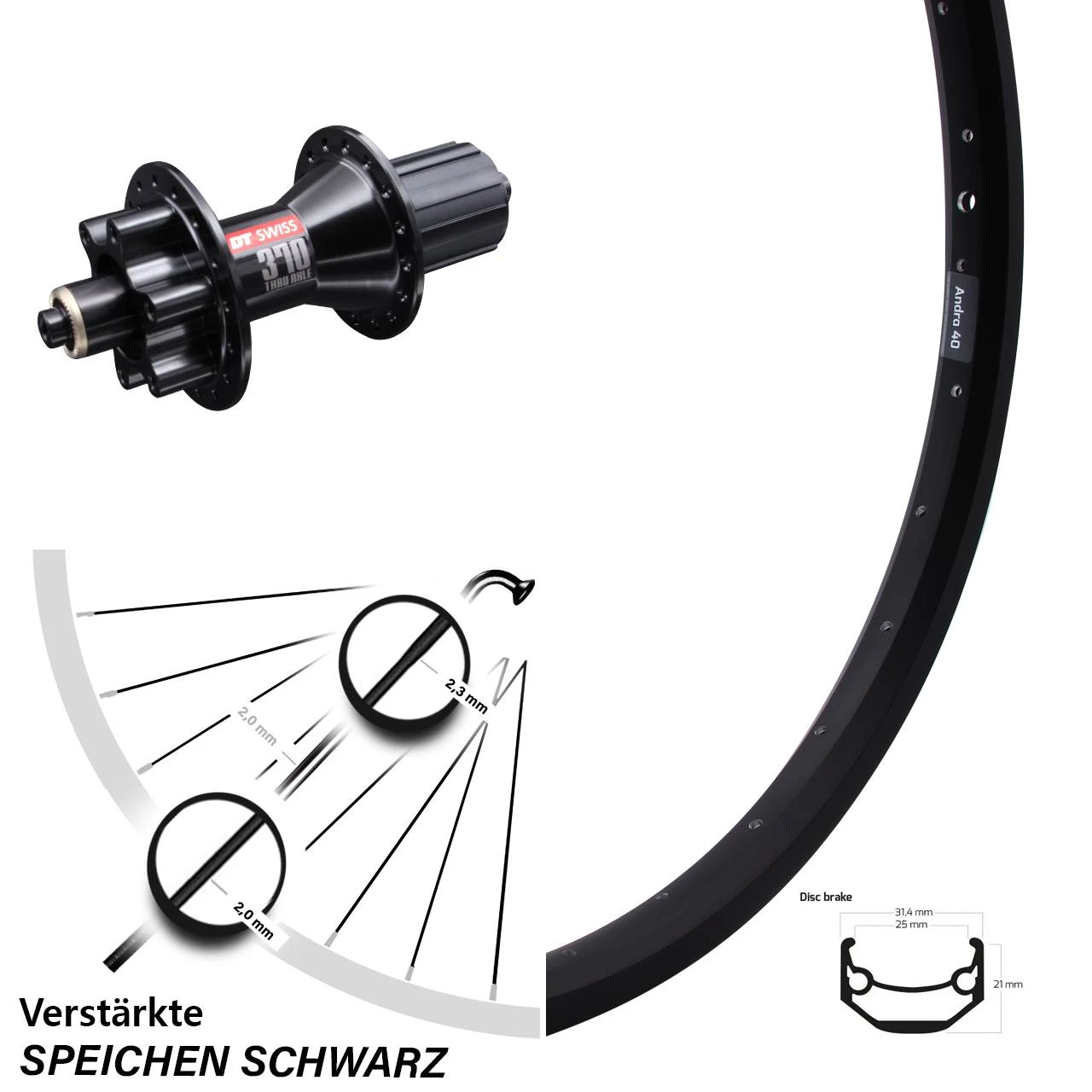 Technische Daten Hinterrad Ryde Andra 40 Disc schwarz und Nabe DT Swiss 370 Disc 6-Loch Shimano 5/135