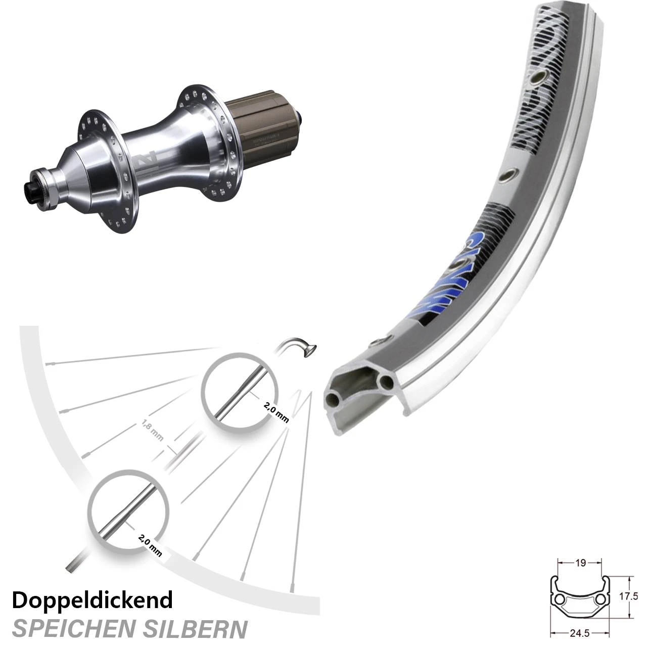 26 Zoll Hinterrad Novatec F 162 SB Exal MX 19 Silbern