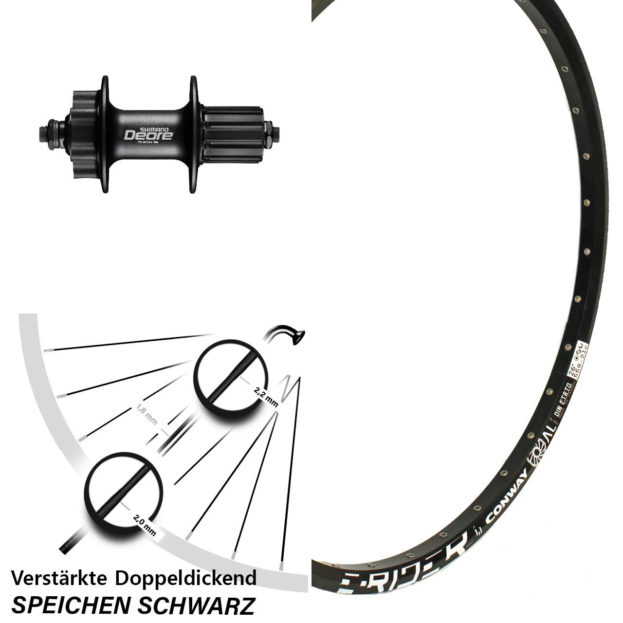 26 Zoll Hinterrad Shimano Deore FH-M525A Mach 1 Magma für Schnellspanner mit verstärkten Doppeldickendspeichen