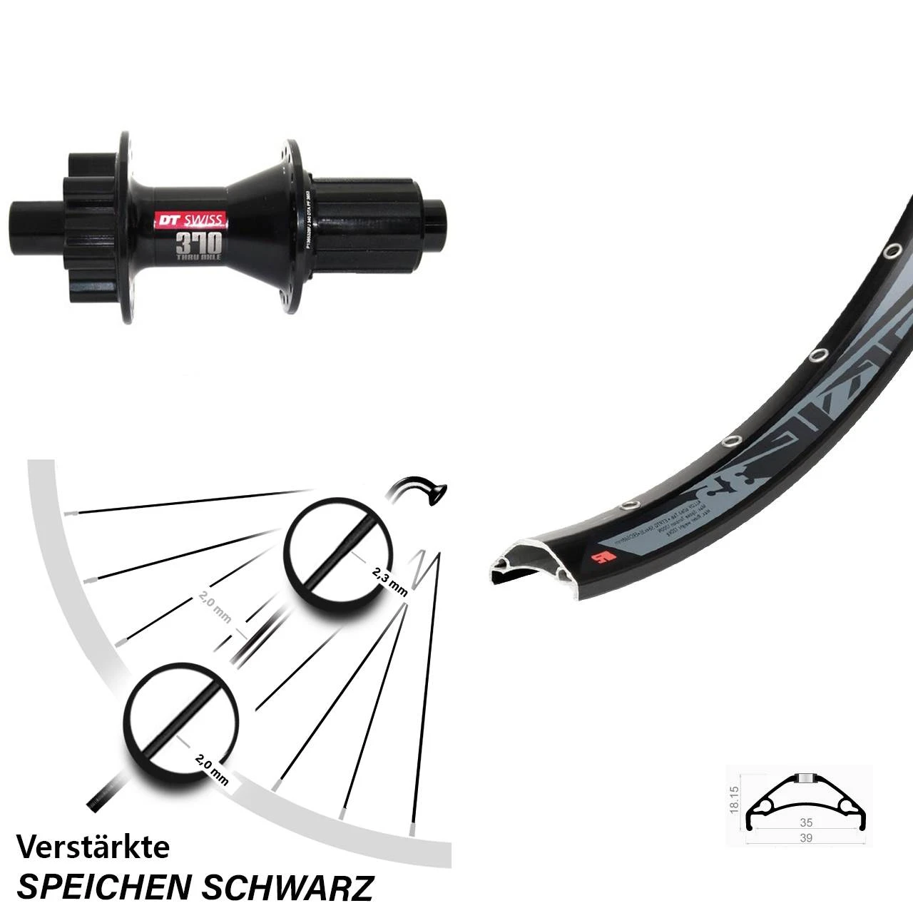 27,5+ Zoll Hinterrad DT Swiss 370 6-Loch Rodi TRYP35 Steckachse 12×142 mm mit verstärkten Speichen