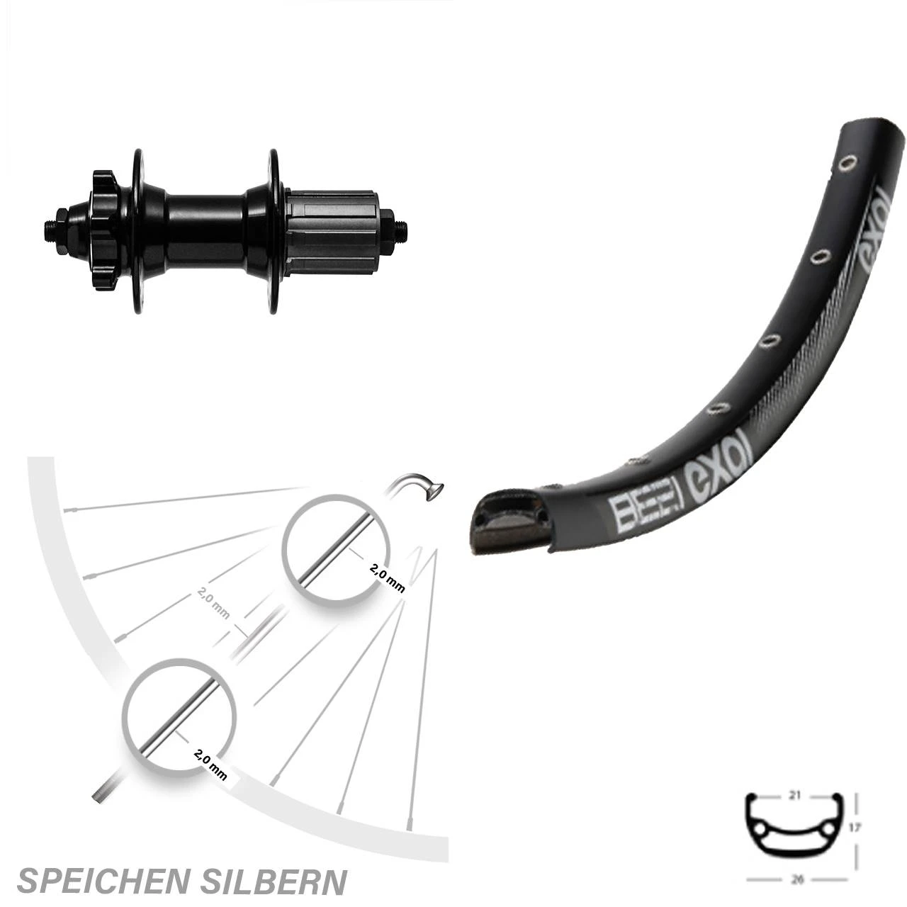 Technische Daten Hinterrad Exal BE 21 schwarz und Nabe Novatec 6-Loch 8-11-fach