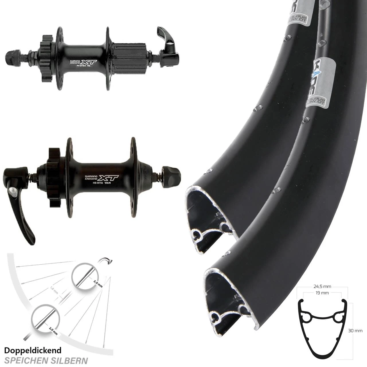 28-29 Zoll Laufradsatz Ryde Dutch 19 Hochprofil Shimano XT 6-loch QR mit Doppeldickendspeichen