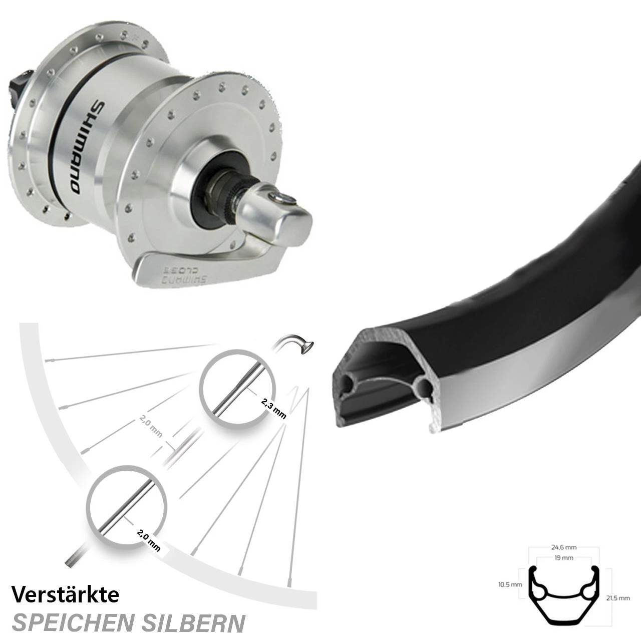 - Nabendynamo: Shimano DH-3N72 silbern – besonders leichtläufig