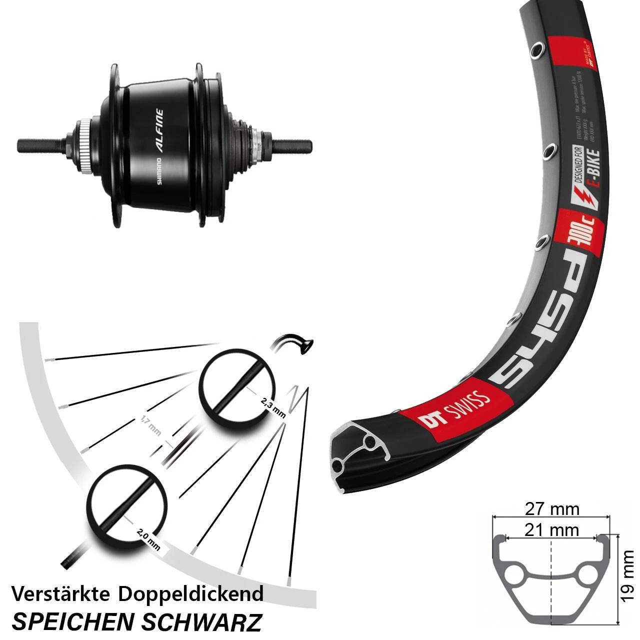 Laufräder mit Nabenschaltung von DT SWISS sind sehr leichtläufig. Die Felge ist in der Farbe schwarz erhältlich. Für Fahrradschläuche mit einem 8,5 mm (inkl. 6,5 mm Adapter für dünne Ventile) Ventil ist dieses qualitativ hochwertige Fahrrad-Hinterrad mit integrierter Nabenschaltung optimal.