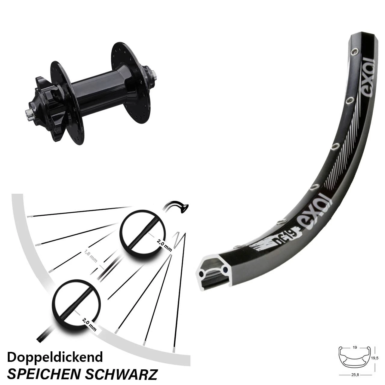Technische Daten Vorderrad Exal DC 19 schwarz mit Nabe Formula DC-91 V2 6-Loch schwarz