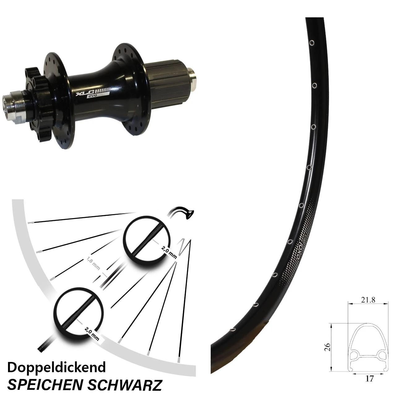 Technische Daten Hinterrad Exal GR 17 schwarz und Nabe XLC Evo Disc schwarz Steckachse