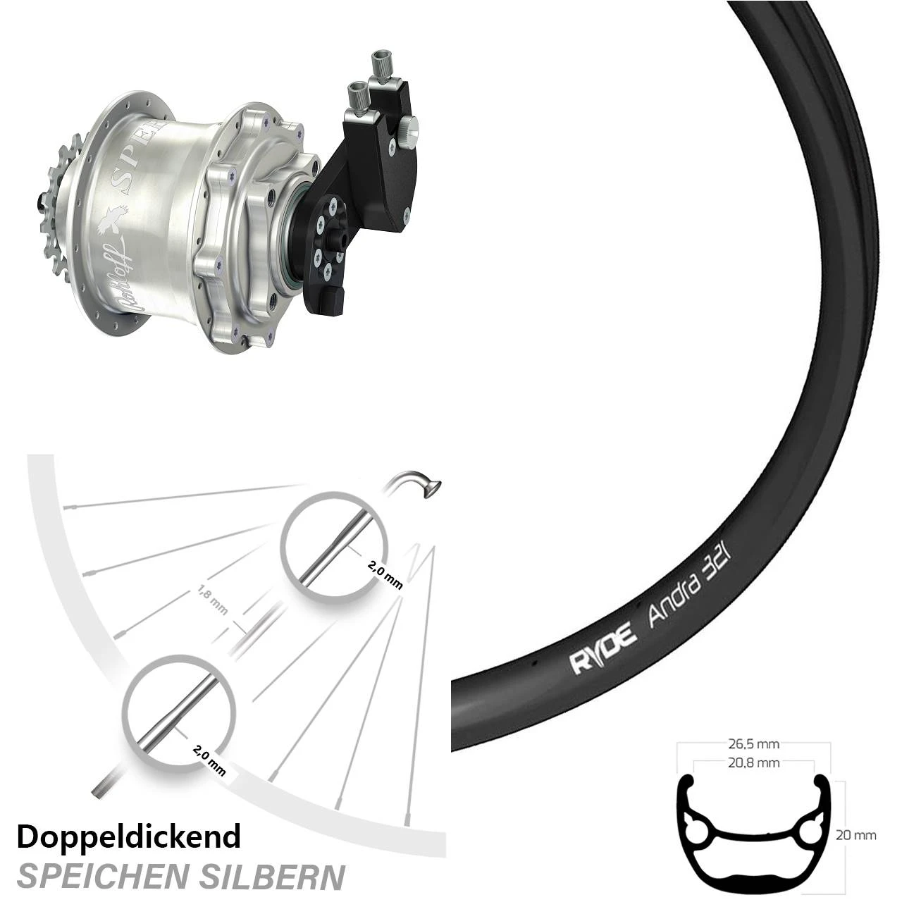 Technische Daten Hinterrad Ryde Andra 321 Disc schwarz und Nabe Rohloff Speedhub 500/14 CC DB OEM silbern
