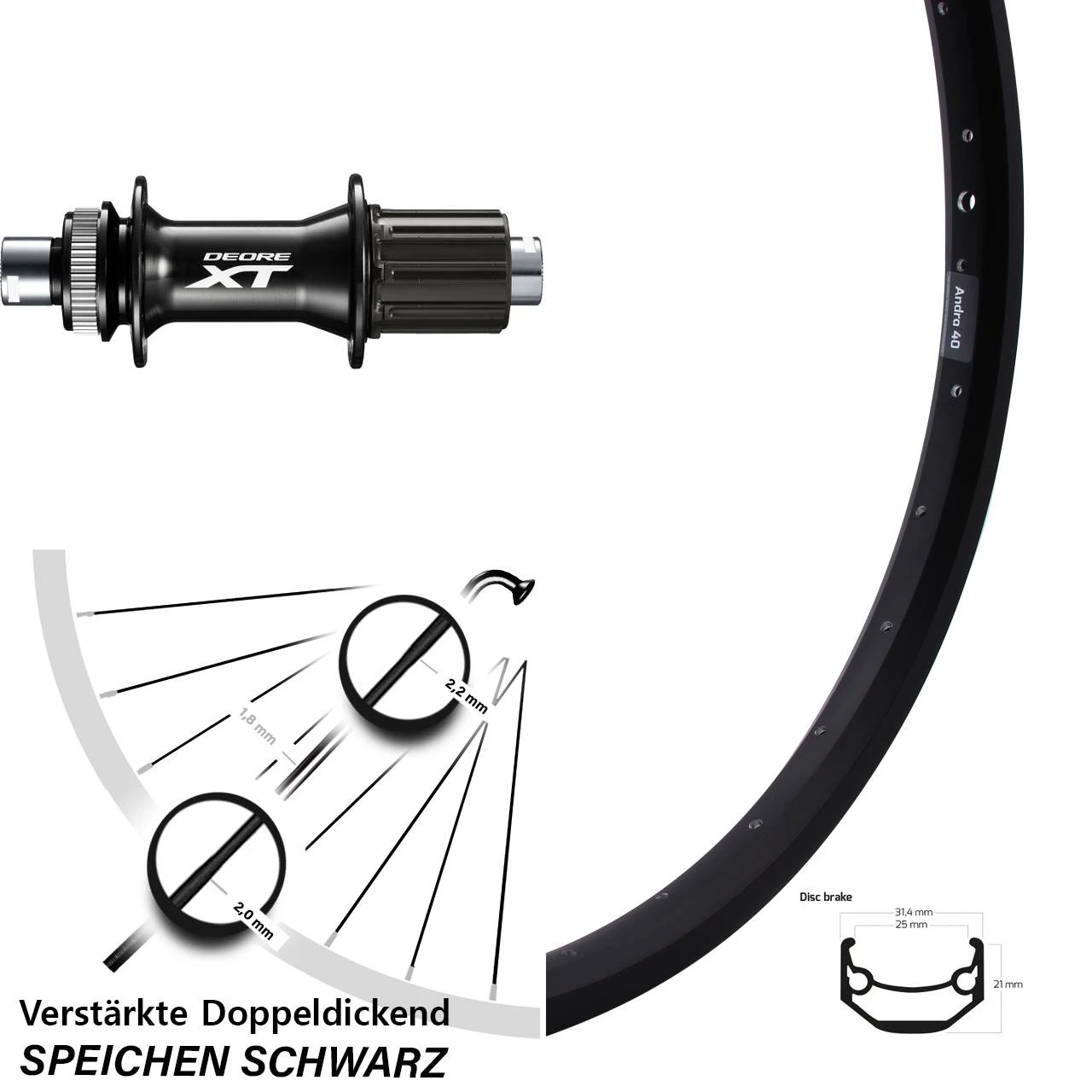 Ryde Andra 40 Disc Hinterrad 28/29 Zoll mit Shimano XT Boost Nabe mit verstärkten Doppeldickendspeichen