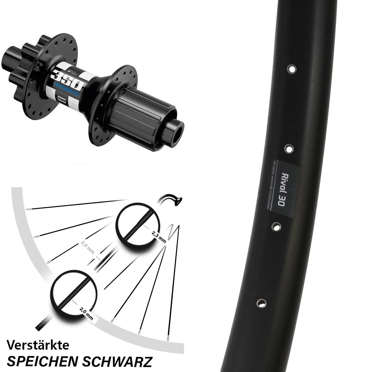 Technische Daten Hinterrad Ryde Rival 30 Disc schwarz und Nabe DT Swiss 350 Hybrid Boost 6-Loch 12/148