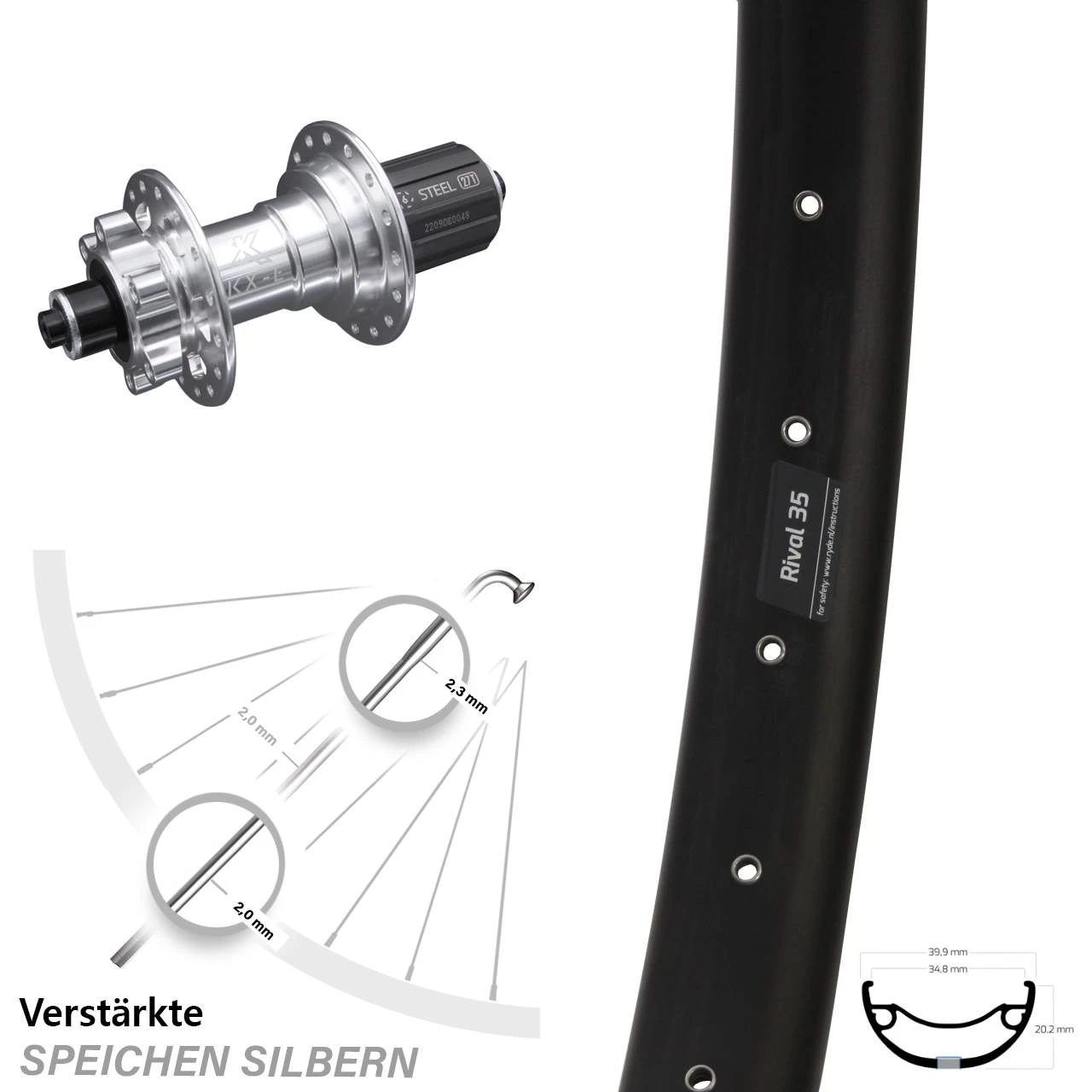 Ryde Rival 35 Disc Hinterrad 29+ Zoll KX-E Nabe Silbern-eloxiert 6 Kugellager