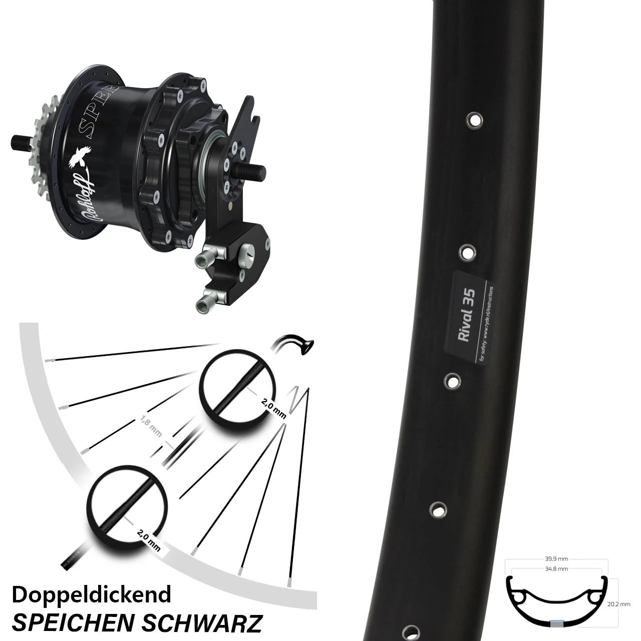 Technische Daten Hinterrad Ryde Rival 35 Disc schwarz und Nabe Rohloff Speedhub 500/14 TS DB OEM2 schwarz