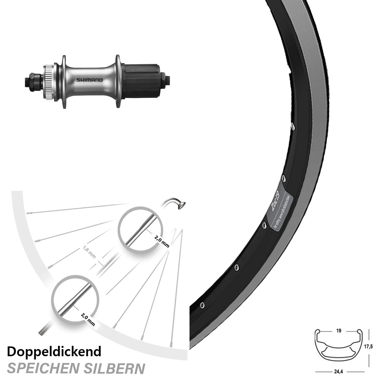 Technische Daten Hinterrad Ryde ZAC 19 Felgenbremse schwarz und Nabe Shimano FH-M4050 sibern