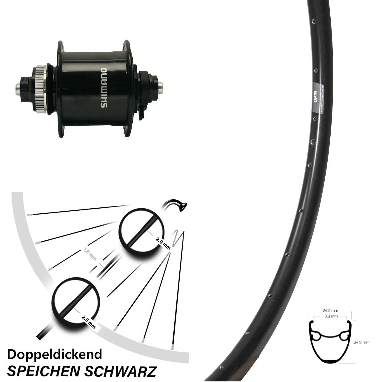 Technische Daten vorderes Laufrad Ryde DP 19 Disc schwarz & Nabendynamo Shimano DH-UR700-3D schwarz